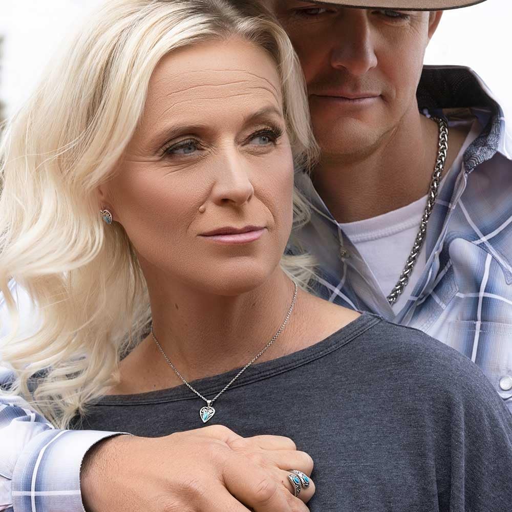 Montana Silversmiths Western Lifestyle Inspired Heart Shaped Pendant Earring Necklace Jewelry Set—
